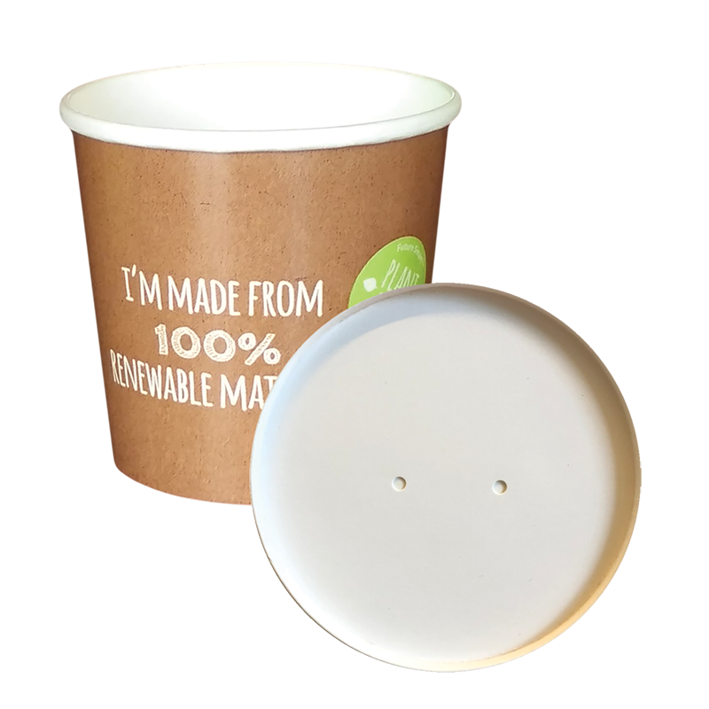 100% renewable paperboard food containers with attractive, environmentally friendly design. Compatible high-quality lids are equipped with ventilation holes. Ideal combination for food delivery, dining in or eating on the go. Made from recyclable PEFC certified paperboard using Huhtamaki’s own Future Smart plant-based lining. Future Smart – Future Forward.